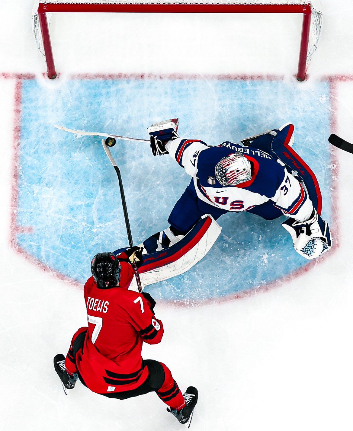 A goalie just stands there, seemingly impassive but actually boiling inside. They play a different game than anyone else. The closest approach in another sport might be the catcher in baseball. But still, he does things that are baseball – goes up to hit, chases fouls, etc. In hockey, a goalie does nothing that other players do. Except for his sweater; he even dresses differently right down to his skates.
